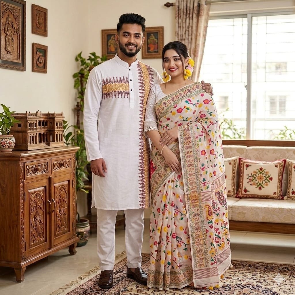 🌸 Boishakhi Couple Collection (Sharee + Panjabi) 🌸