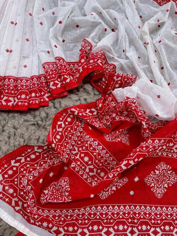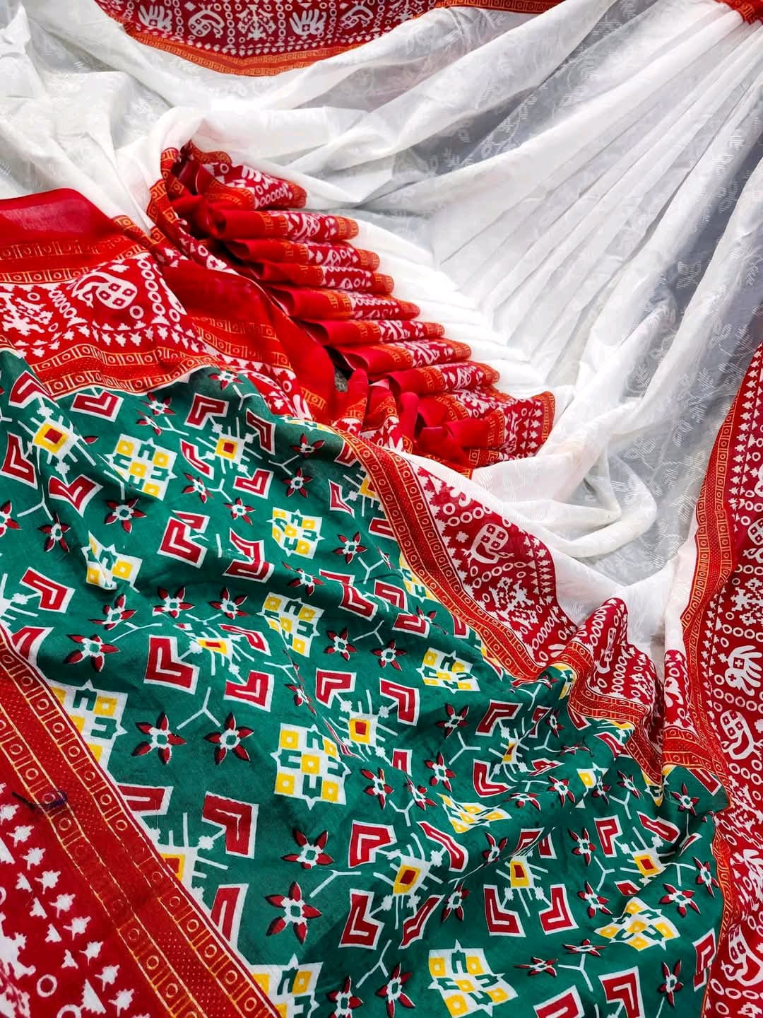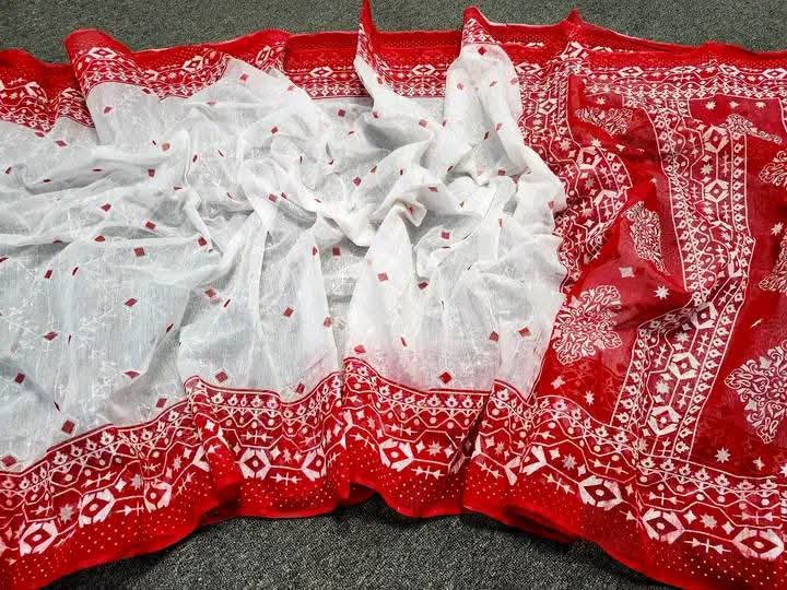 ✔️ দৃষ্টিনন্দন হাফ সিল্ক প্রিন্ট শাড়ি